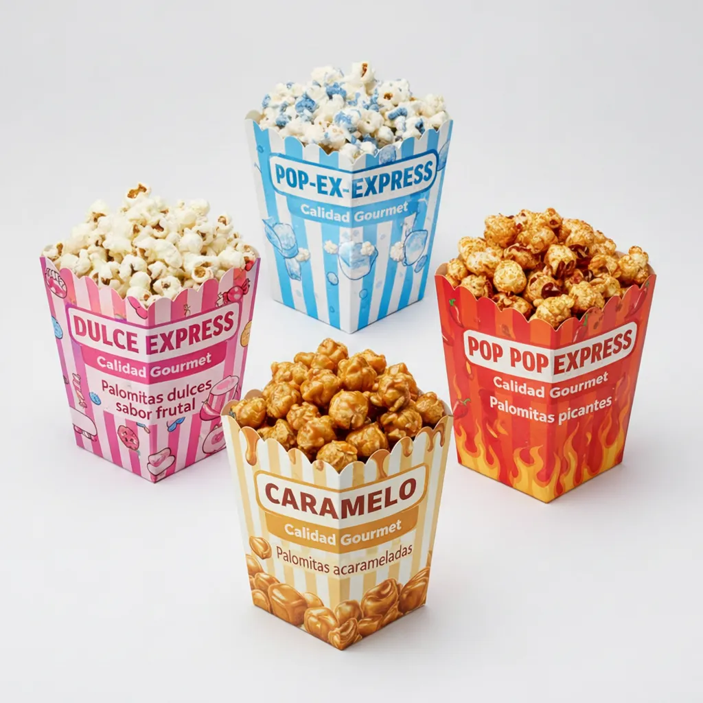Si tu negocio vende palomitas de forma recurrente, nuestras cajas de palomitas personalizadas están pensadas para ti.